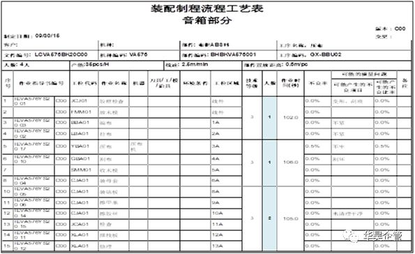2.3设计细胞线人数/产能;生产节拍/产能负荷;并及时修改ERP系统途层,完成《流程工艺表》(如图12)。