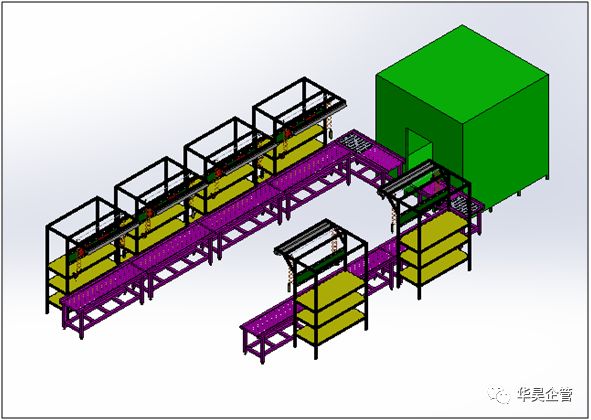 硬件部份:精益U型滚筒细胞线(Cell拉)设计完成。接下来就是软件部分,软件部分:怎样在公司车间导入精益U型滚筒细胞线。